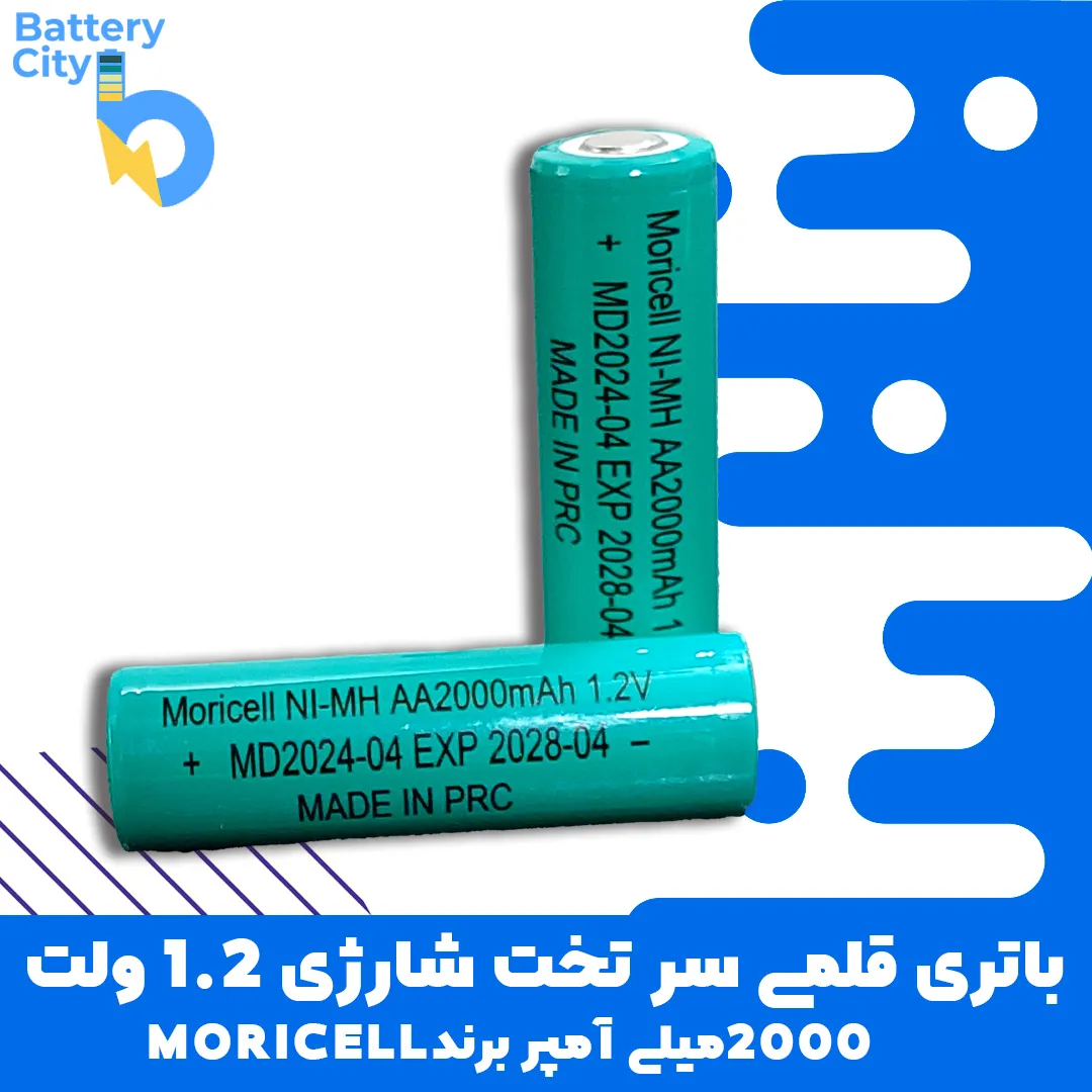 باتری قلمی سرتخت شارژی 1.2 ظرفیت 2000 میلی آمپر 1.2 آمپر برند MORICELL