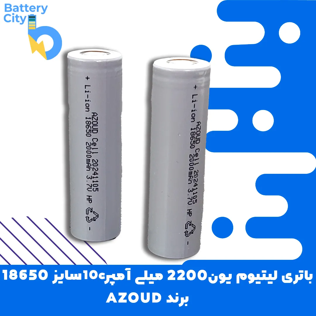 باتری لیتیوم یون 18650 ظرفیت 2200 میلی آمپر 10C برند AZOUD