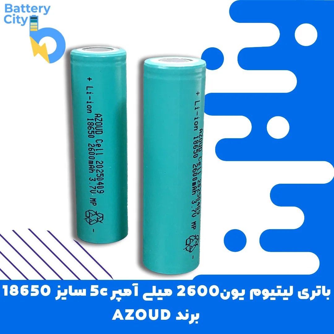 باتری لیتیوم یون 18650 ظرفیت 2600 میلی آمپر 5C برند AZOUD(اورجینال)